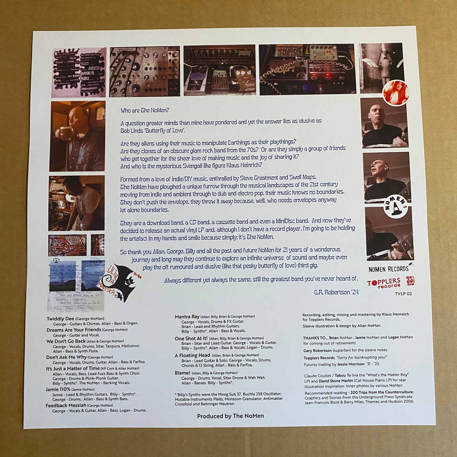 The NoMen on vinyl at last! Nine songs of psyched out garage rock; a far cry from their recent ambient output. Comes with a download code and an information insert.